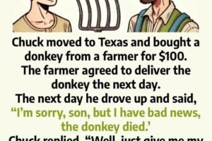 Chuck moved to Texas and bought a donkey from a farmer for $100. The farmer agreed to deliver the donkey the next day. The next day he drove up and… Read more