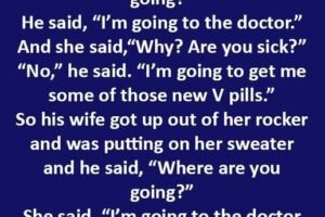 This old man in his eighties got up and was putting on his coat. His wife said, “Where are you going?” He said, “I’m going to the doctor.” And she… Read more