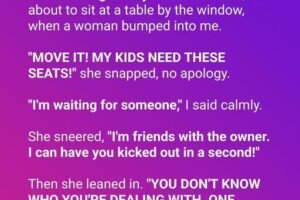 I was waiting for my friend at a cafe, about to sit at a table by the window, when a woman bumped into me. “MOVE IT! MY KIDS NEED THESE… Read more