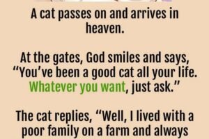 A cat passes on and arrives in heaven. At the gates, God smiles and says, “You’ve been a good cat all your life. Whatever you want, just ask.” The cat… Read more