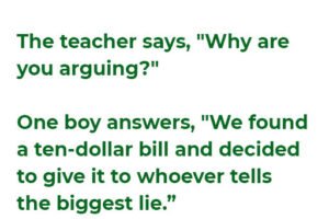 Two students were arguing when their teacher entered the classroom. The teacher says, “Why are you arguing?” One boy answers, “We found a ten-dollar bill and decided to give it… Read more