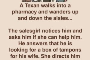 A Texan walks into a pharmacy and wanders up and down the aisles… The salesgirl notices him and asks him if she can help him. He answers that he is… Read more