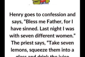 Henry goes to confession and says, “Bless me Father, for I have sinned. Last night I was with seven different women.” The priest says, “Take seven lemons, squeeze them into… Read more