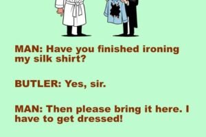 MAN: Have you finished ironing my silk shirt? BUTLER: Yes, sir. MAN: Then please bring it here. I have to get dressed! BUTLER: Sir, I was ironing and someone knocked… Read more