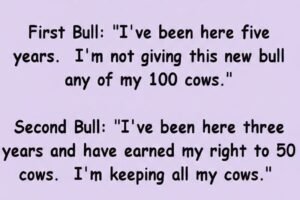 Three bulls heard the rancher was bringing another bull onto the ranch… First Bull: “I’ve been here five years. I’m not giving this new bull any of my 100 cows.”… Read more