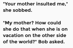 The Letter When the Bob came home, his wife Diane was crying. “Your mother insulted me,” she sobbed. “My mother? How could she do that when she is on vacation… Read more