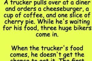 A trucker pulls over at a diner and orders a cheeseburger, a cup of coffee, and one slice of cherry pie. While he’s waiting for his food, three huge bikers… Read more
