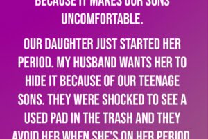 My husband wants our daughter to stop using period products because it makes our sons uncomfortable. Our daughter just started her period. My husband wants her to hide it because… Read more